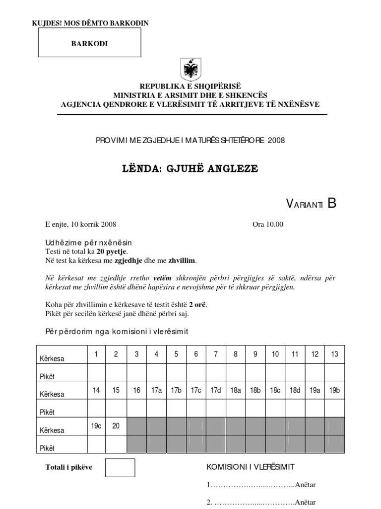 Anglisht Matura 2007 2008 Prov V B Pdf