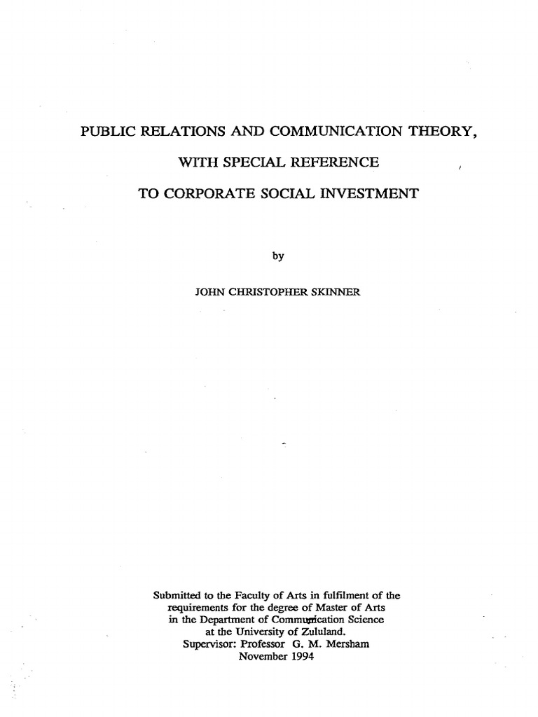 Public Relations Communication Theory J C Skinner 1 Pdf Public Relations World View