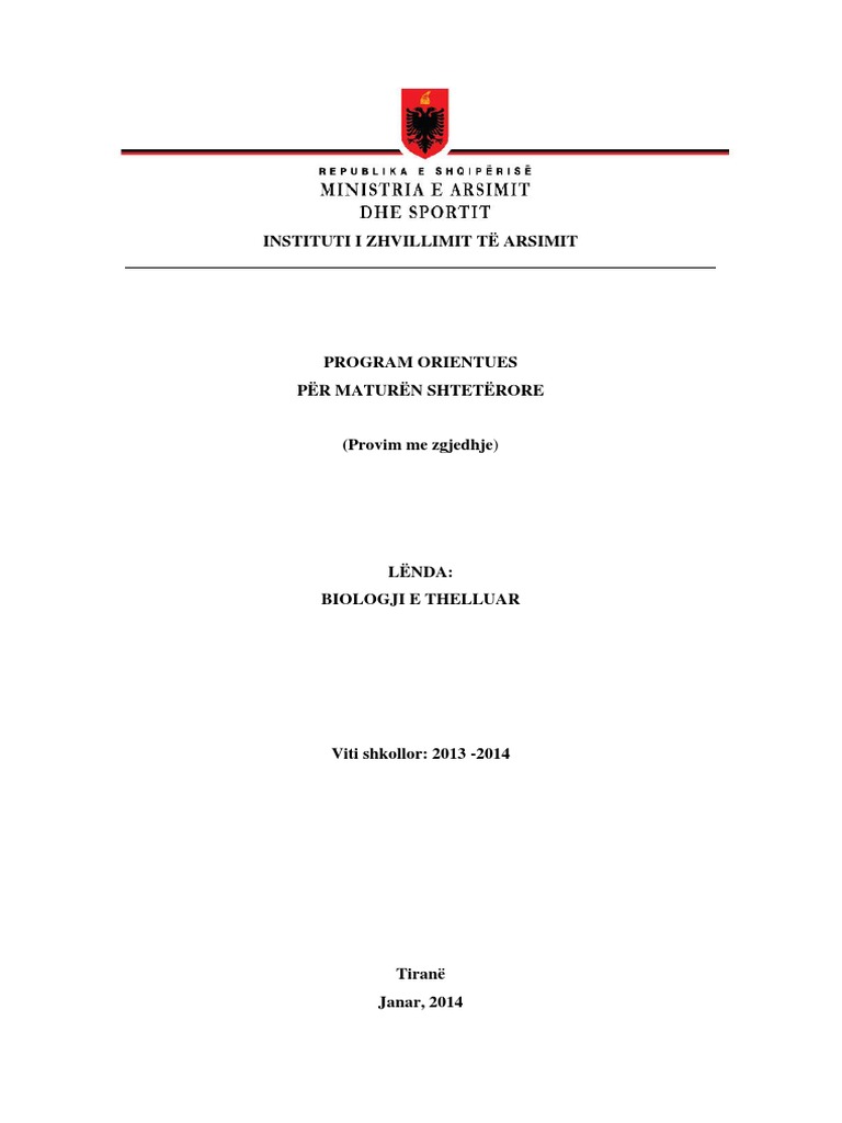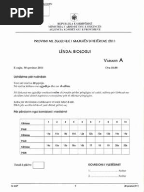 Në këtë faqe do të gjeni provimet me zgjedhje të Biologjisë ndër vite së bashku me skemat e vlerësimit që prej vitit 2009. Liber Mesuesi Biologjia 10 scribd com. Suksese në provime MATURA 2016 biologji_berthame biologji_thelluar MATURA 2015 biologji_berthame biologji_thelluar MATURA 2014 biologji-berthame-a biologji-berthame-b.