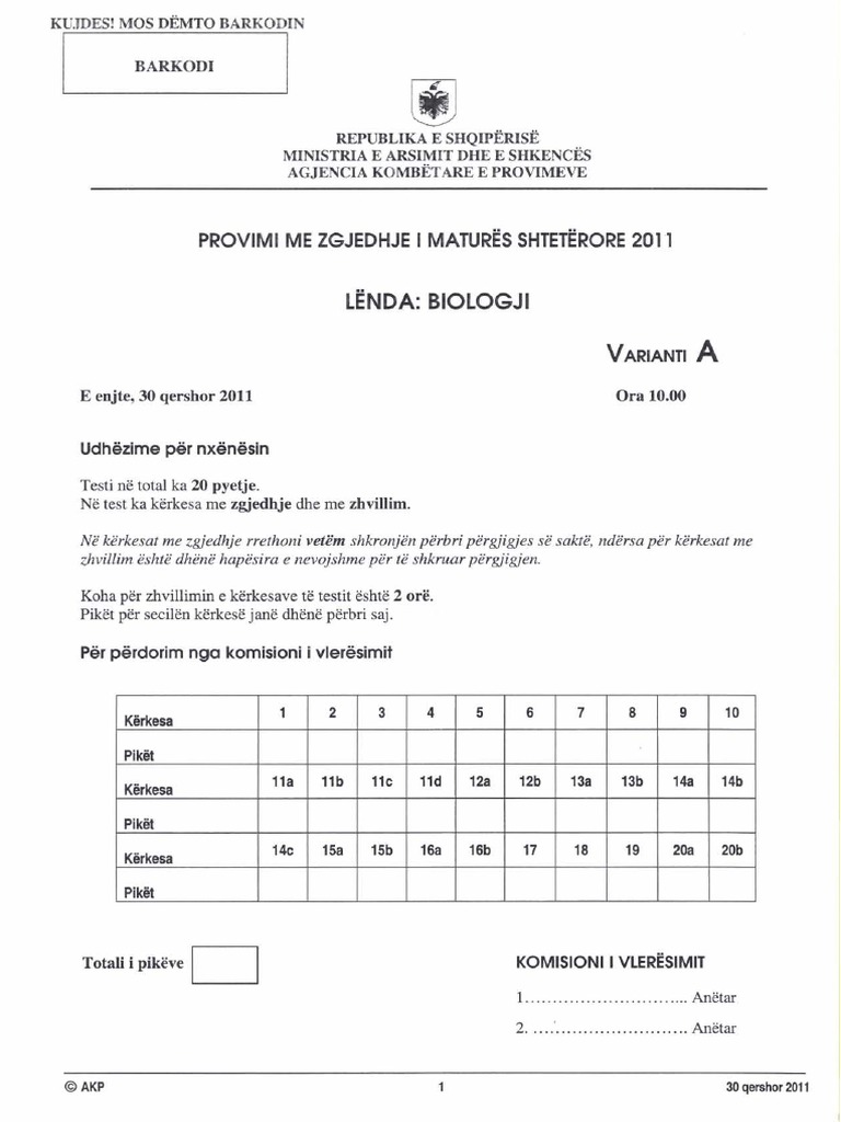 Matura shteterore mp ministria e arsimit. Matura shteterore biologji 2009 zgjidhje download. Siç e përmban rregullorja të gjithë do të dalin nga provimi në të njëjtën kohë tha Harizaj.