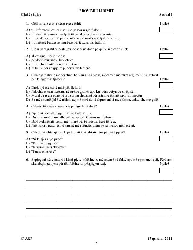 Provimi i letersise 2012 pergjigjet e sakta. Vlerësimi në të fokusohet në dy fusha bazë. Drejtimi shoqëror dhe i përgjithshëm Udhëzime për nxënësin.